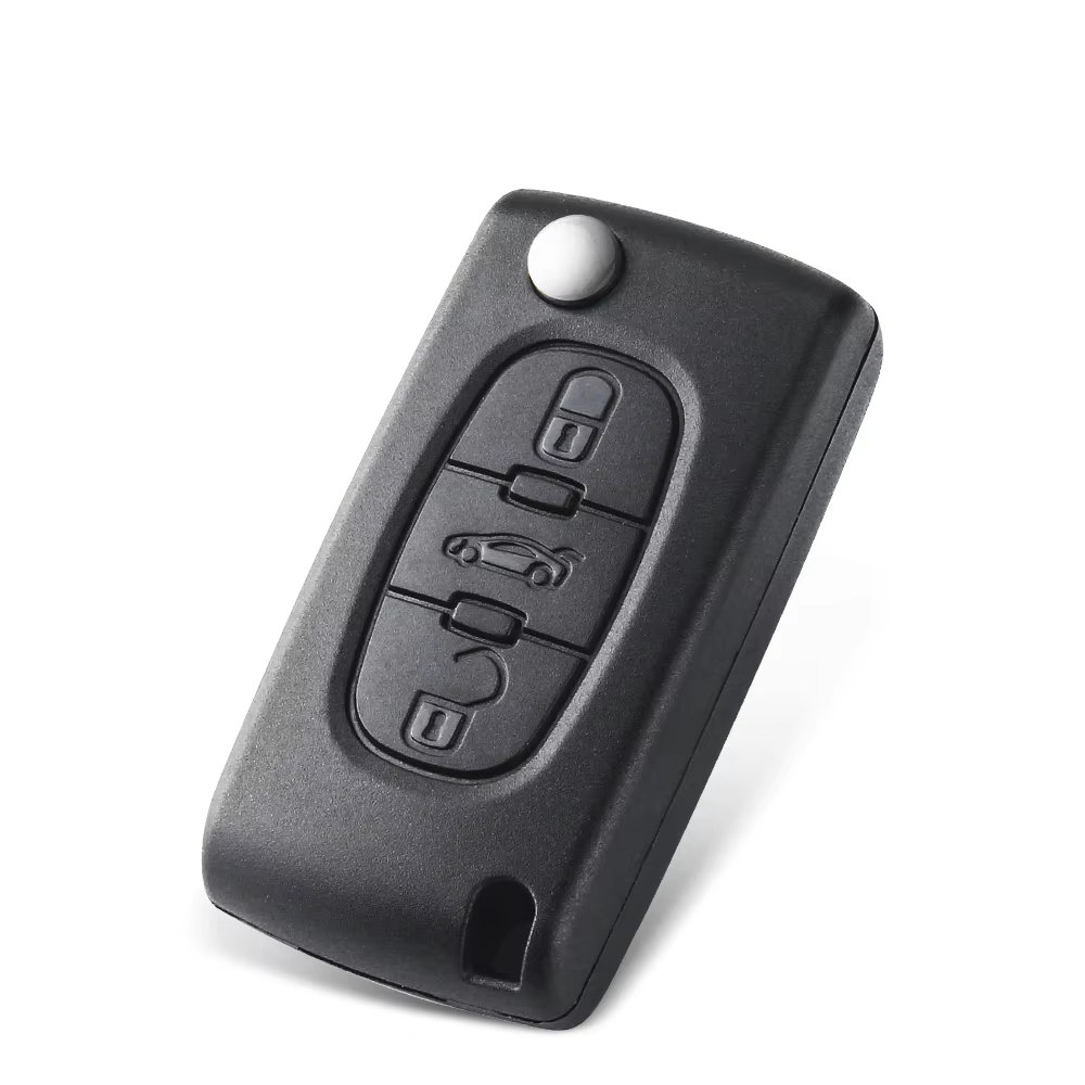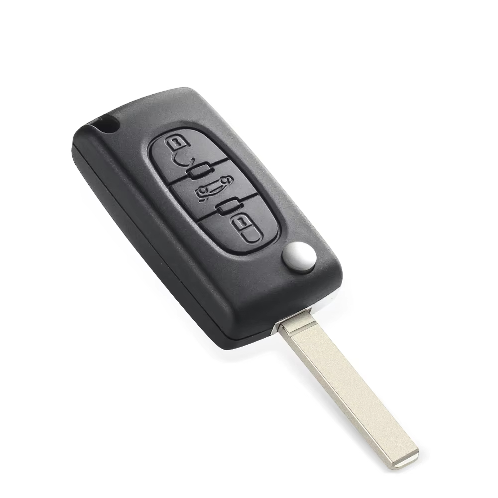 3 gombos Peugeot/Citroen elemtartó nélküli bicskakulcsház- CE523- csomagtér, amely elektronikát nem tartalmaz. A kulcsház nyers kulcstollal rendelkezik.